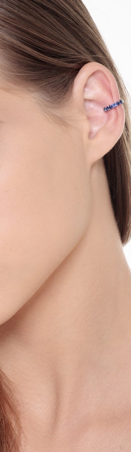 Pendiente único earcuff en oro blanco 18k con zafiros azules