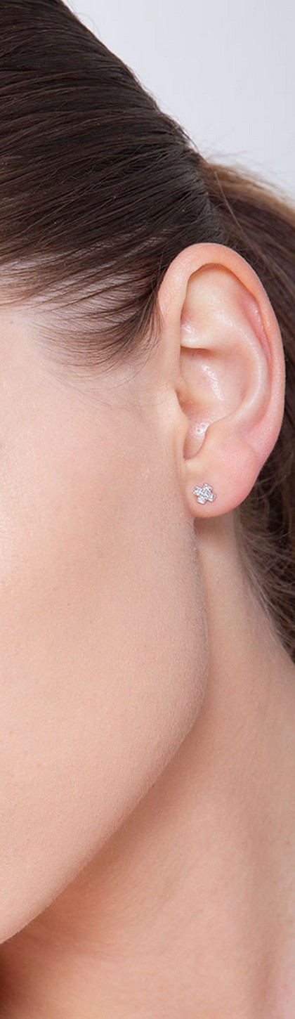 Pendiente suelto con cruz en oro blanco de 18 quilates y diamantes
