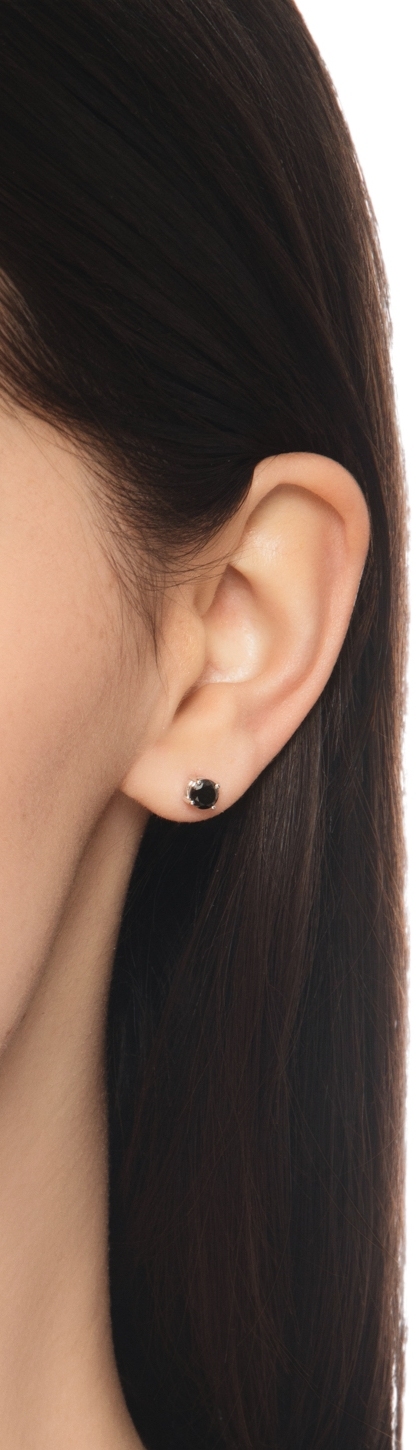 Pendientes individuales en oro blanco de 18k a 4 garras con diamante negro