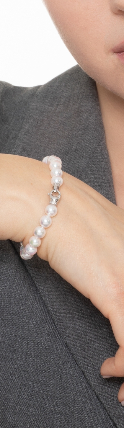 Pulsera de perlas japonesas con cierre en oro blanco 18k y diamantes