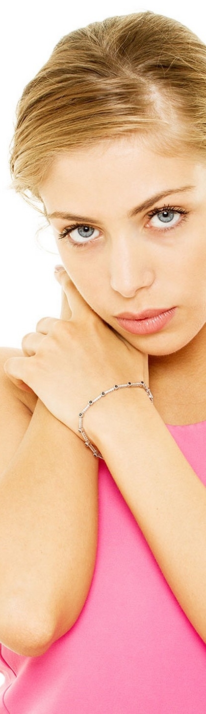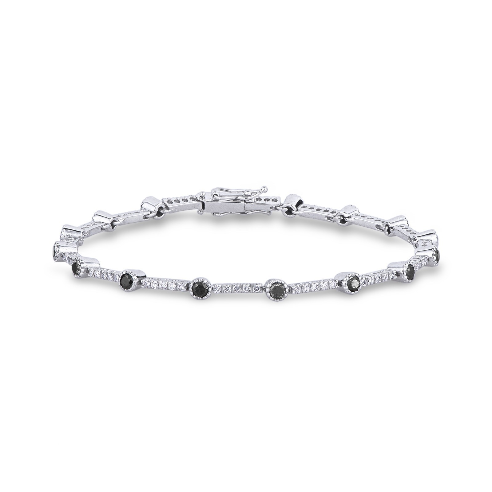 Brazalete Alternado en Oro Blanco 18k con Diamantes Negros y Blancos