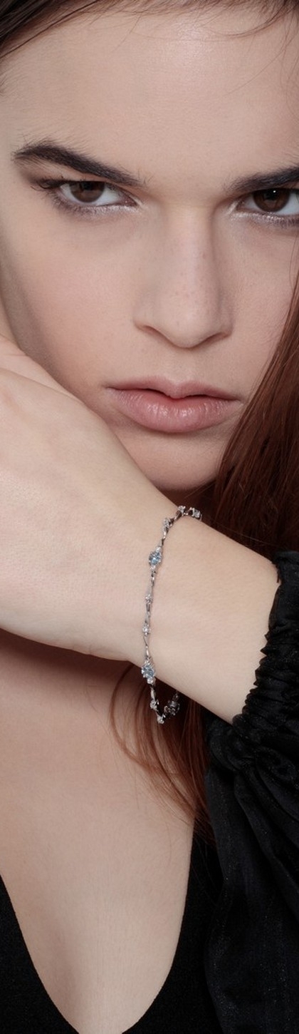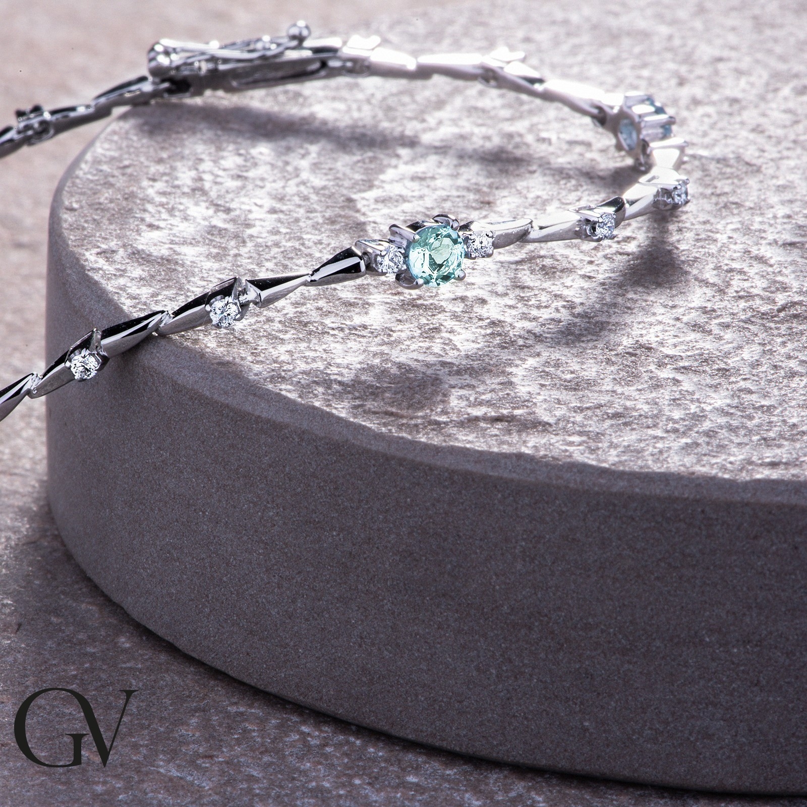 Pulsera en oro blanco 18k con aguamarinas ovaladas y diamantes
