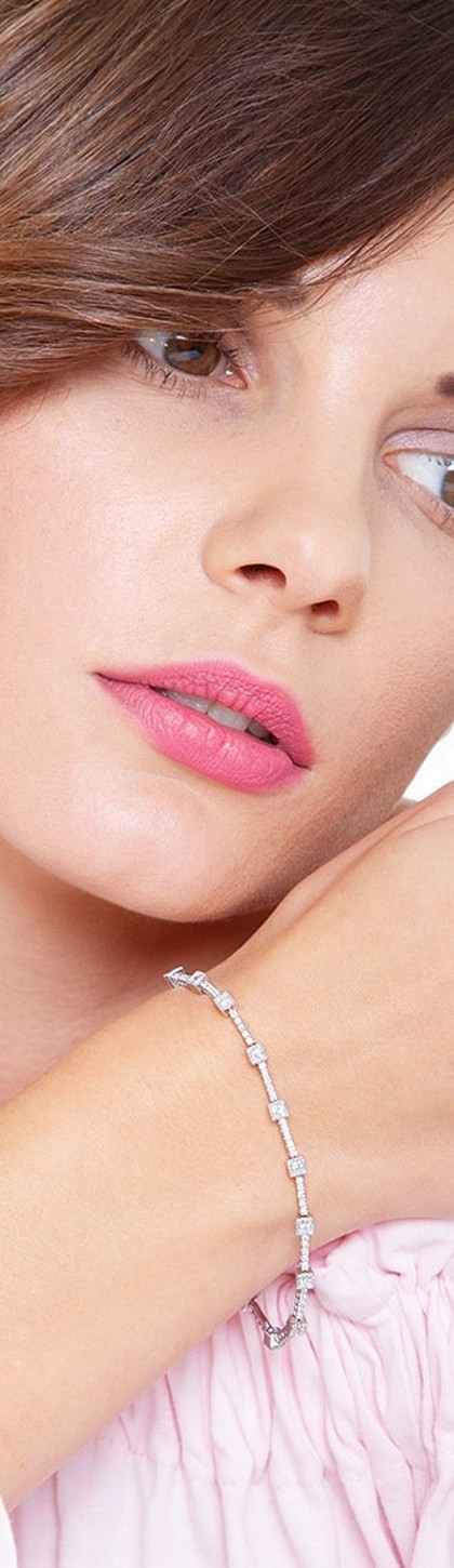 Pulsera en oro blanco 18k con segmentos cuadrados y diamantes