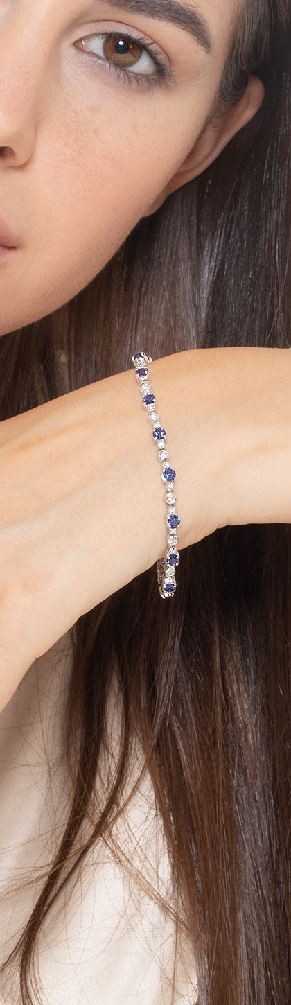 Pulsera oro blanco 18k con zafiros y diamantes