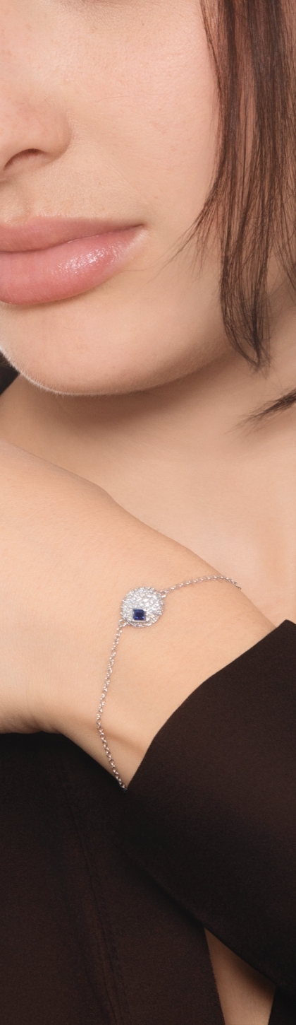Pulsera con colgante ovalado de diamantes y zafiro azul