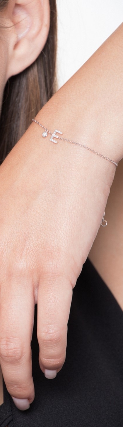 Domino es una colección de joyas personalizadas: pulseras, collares, anillos y pendientes con letras en oro y diamantes