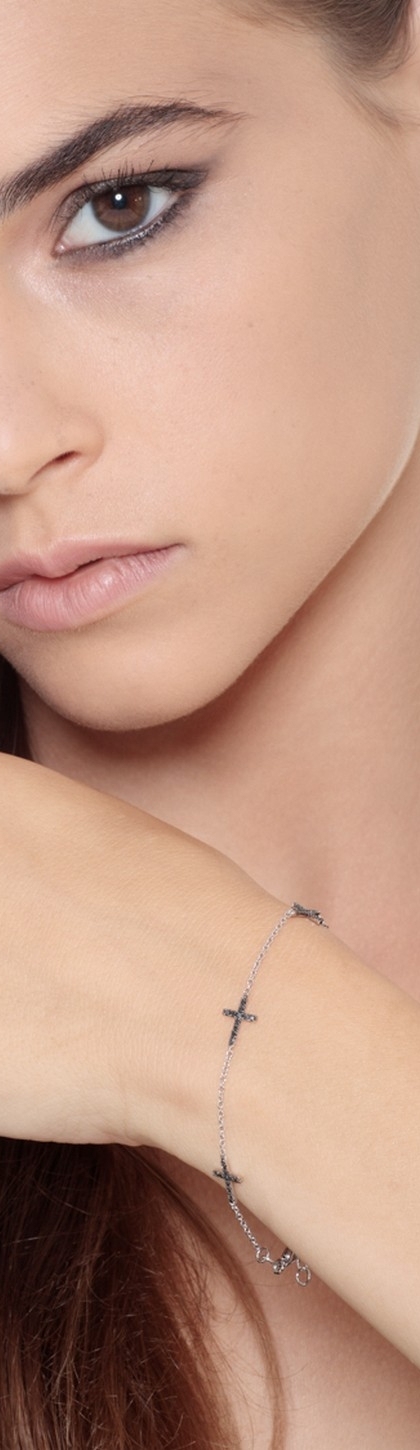 Pulsera cruces de oro blanco de 18 quilates y diamantes negros