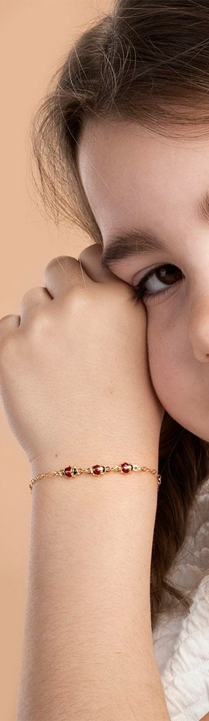 Pulsera de mujer Fantasía en oro amarillo 18k con seis mariquitas