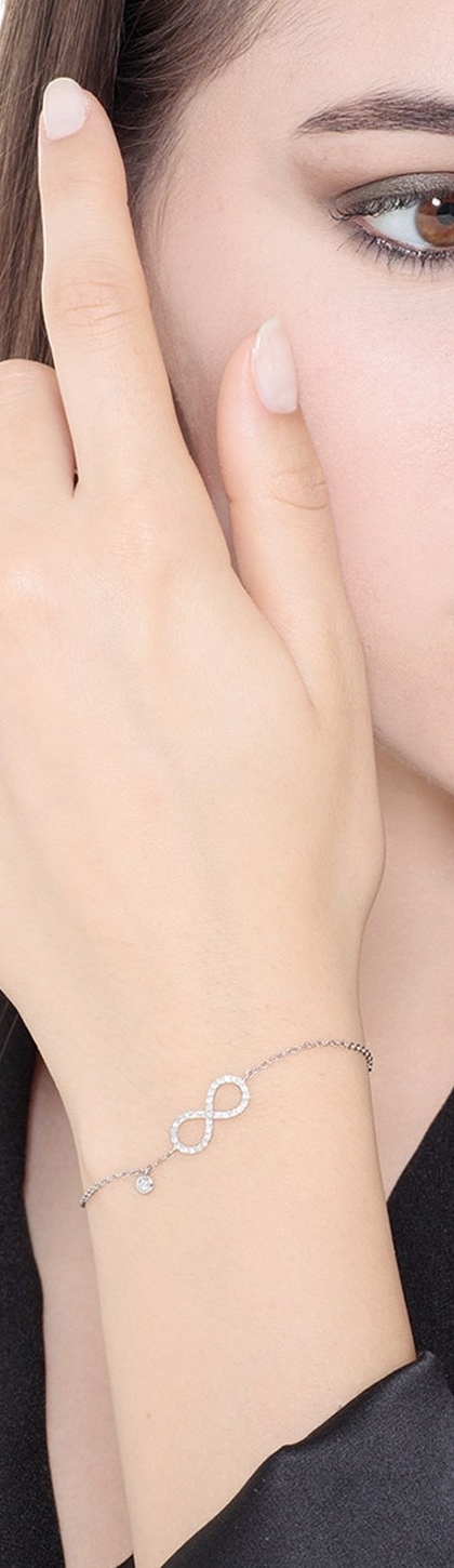 Pulsera de oro blanco 18k con símbolo infinito, 15+3 cm