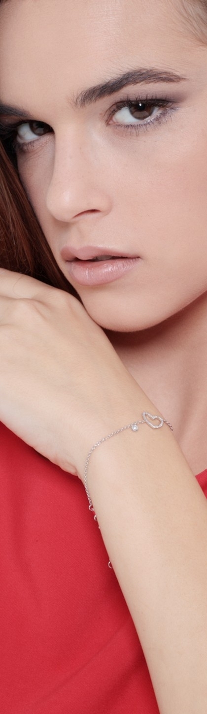 Pulsera de oro blanco de 18k con un corazón de diamantes