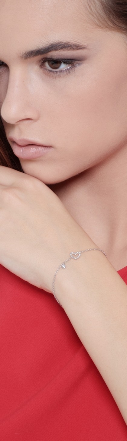 Pulsera en oro blanco 18k con corazón y diamantes