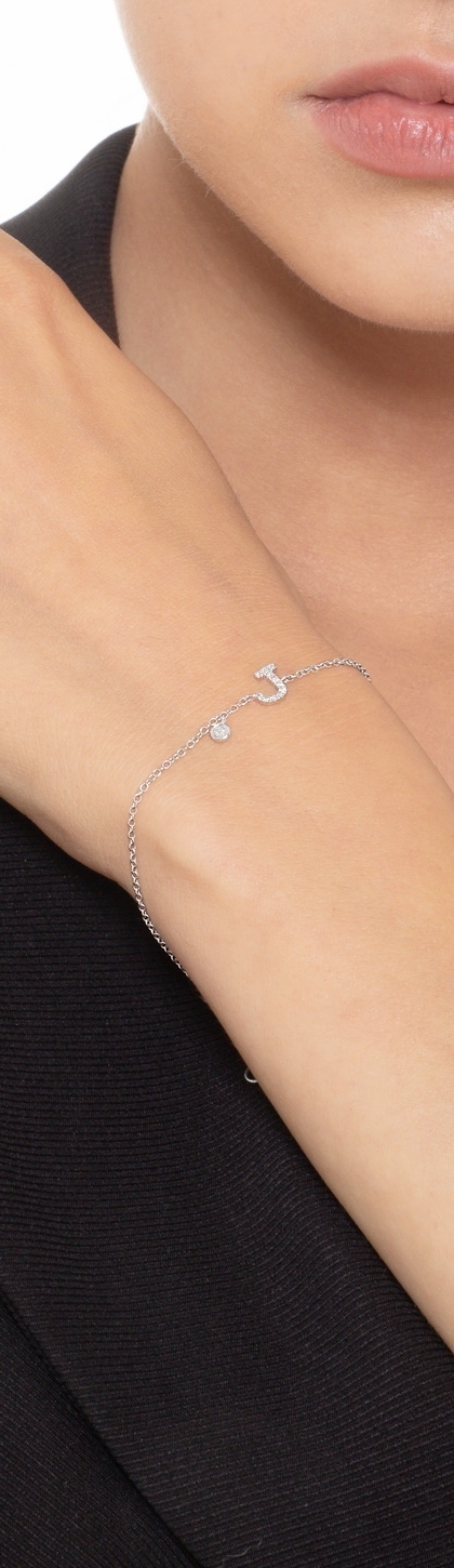 Domino es una colección de joyas personalizadas: pulseras, collares, anillos y pendientes con letras en oro y diamantes