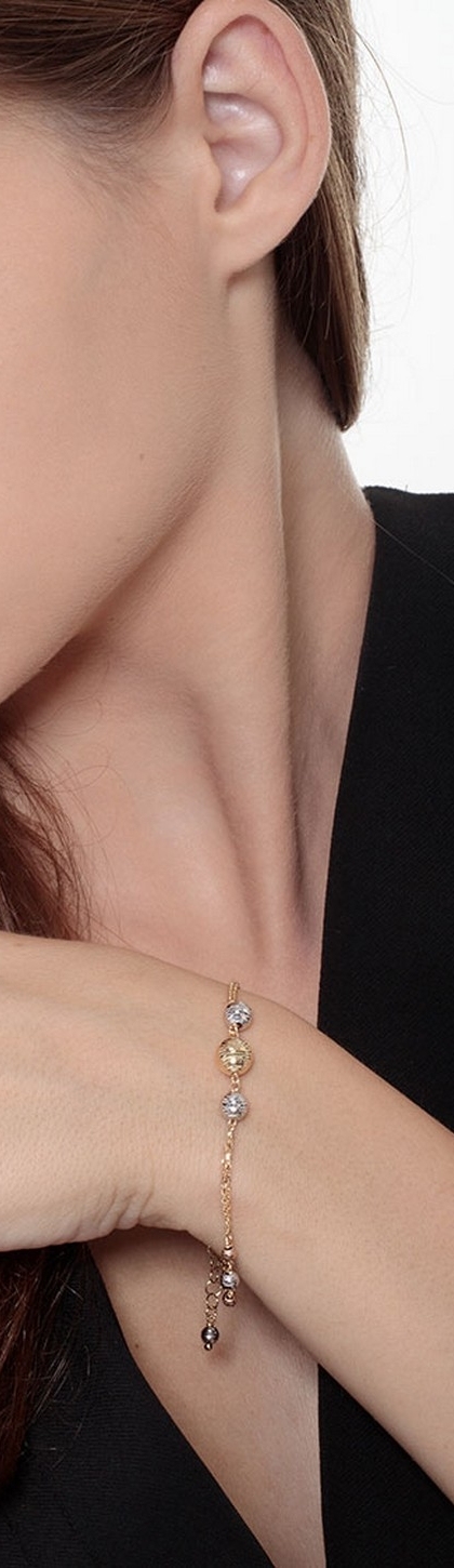 Pulsera en oro tricolor 18k con esferas diamantadas