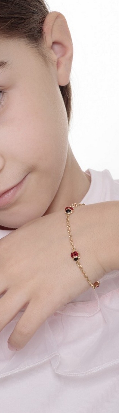 Pulsera niña oro amarillo 18k mariquitas esmaltadas