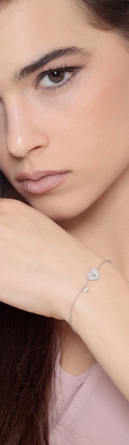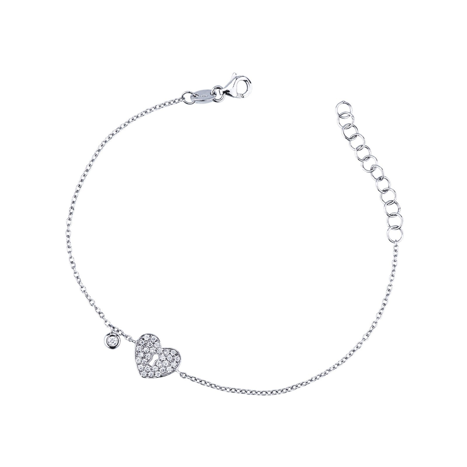 Pulsera oro blanco 18k corazón candado en pavé de diamantes