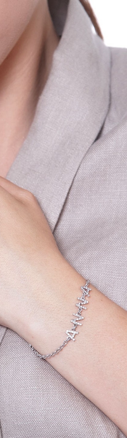 Domino es una colección de joyas personalizadas: pulseras, collares, anillos y pendientes con letras en oro y diamantes
