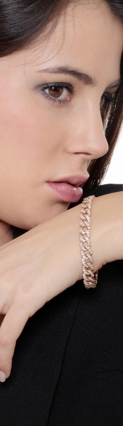 Brazalete en oro rosa 18k con diamantes en eslabones