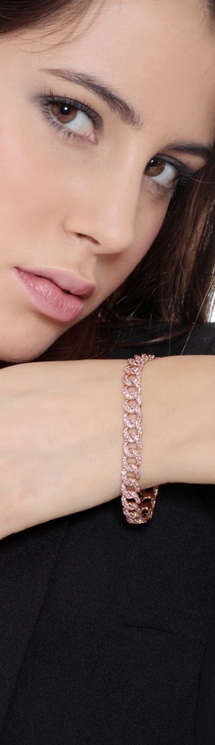 Pulsera cubana de oro rosa de 18k con zafiros rosas