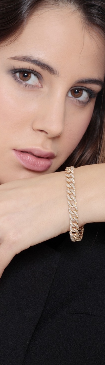 Pulsera cubana en oro amarillo de 18k con diamantes