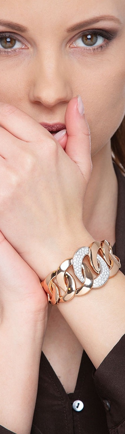 Pulsera cubana oro blanco y rosa 18k con diamantes