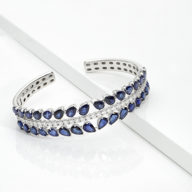 Bracelet ouvert en or blanc 18k saphirs goutte