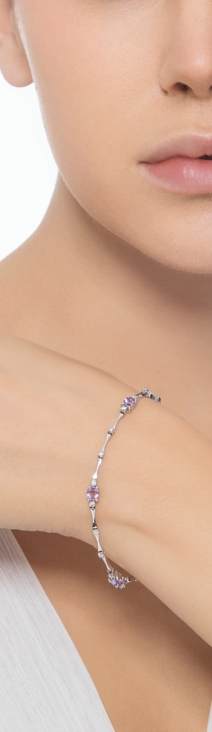 Pulsera en oro blanco 18k con amatistas y diamantes