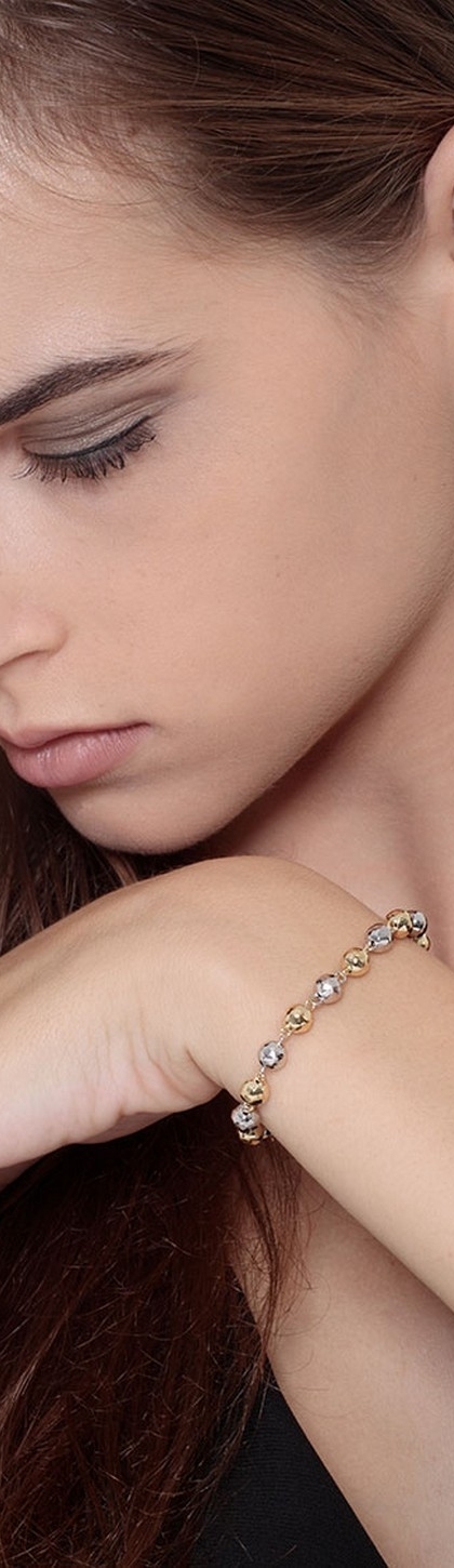 Pulsera mujer oro amarillo y blanco 18k bolas diamantadas