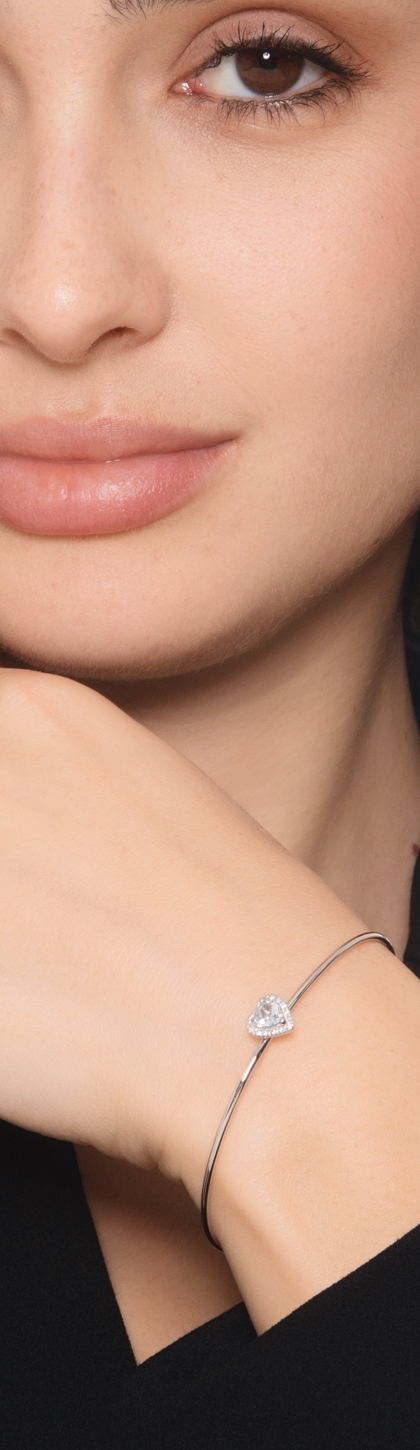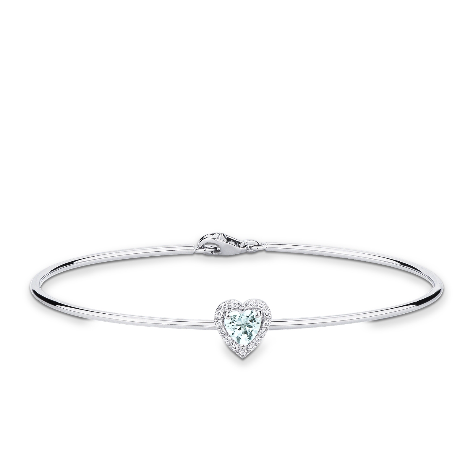 Brazalete rígido en oro blanco con aguamarina corazón y diamantes