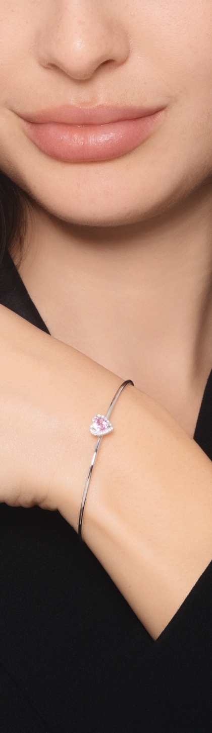 Brazalete rígido en oro blanco con zafiro rosa corazón y diamantes
