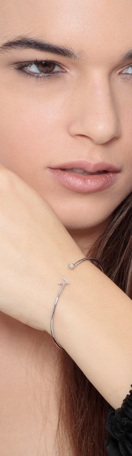 Brazalete rígido en oro blanco de 18 quilates con letra V
