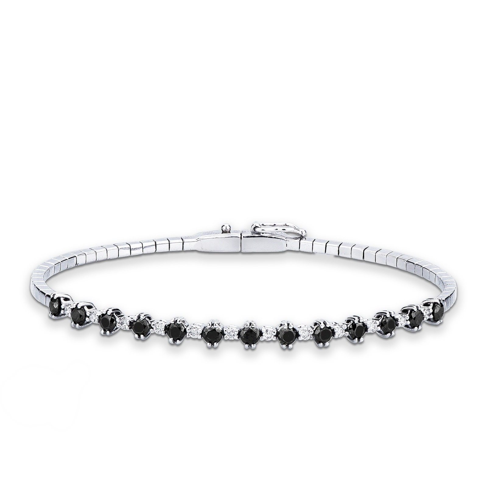 Brazalete Semirígido en Oro Blanco 18k con Diamantes Negros y Blancos