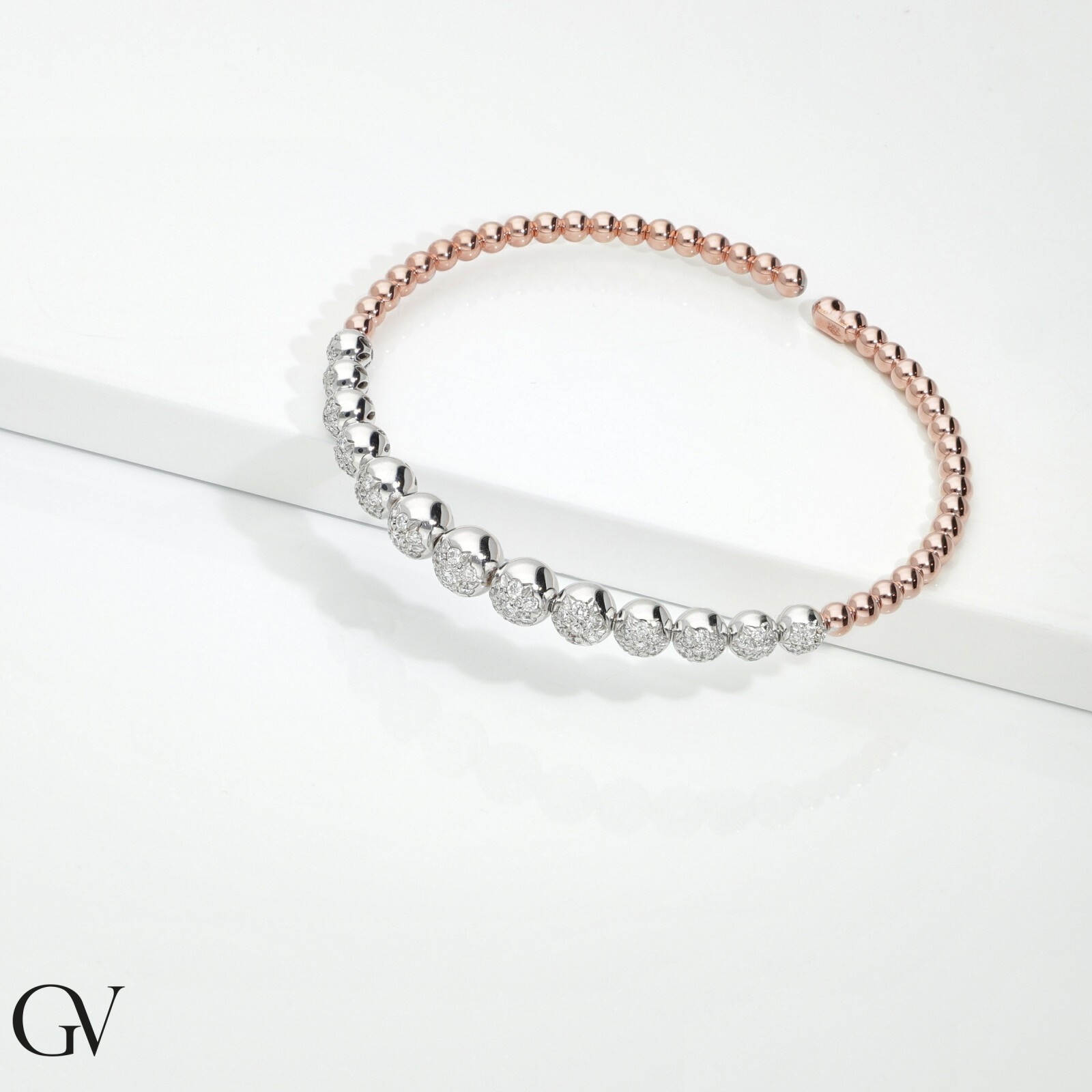 Pulsera con Esferas de Diamantes en Oro Blanco y Rosa 18K