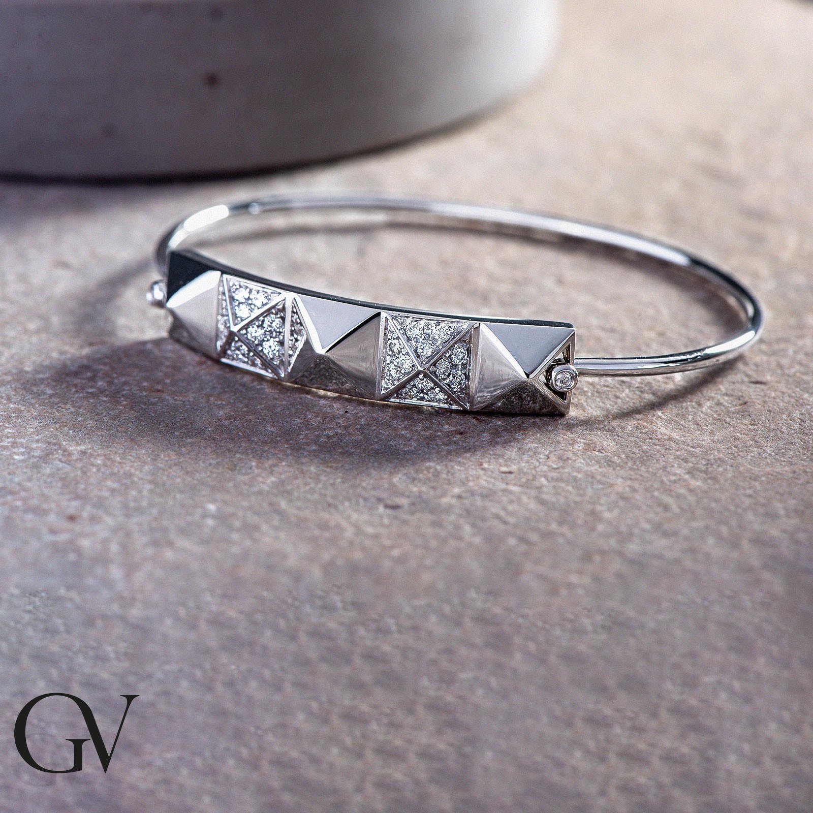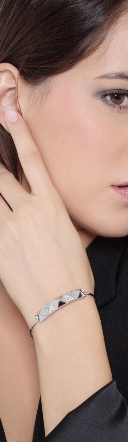 Pulsera con placa y tachuelas Oro Blanco 18k con diamantes