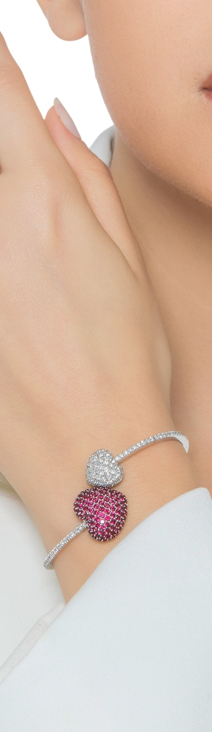 Pulsera corazón de diamantes y rubíes en oro blanco