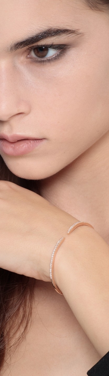 Pulsera de muelle en oro rosa 18k con diamantes brillantes