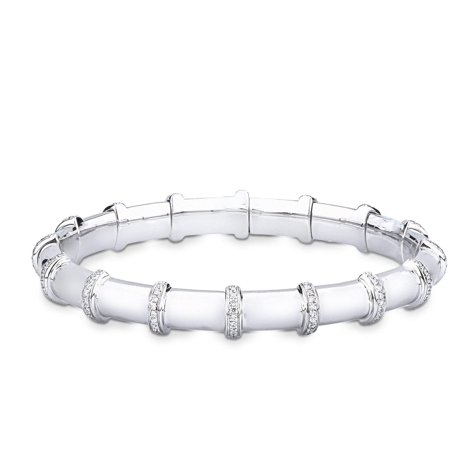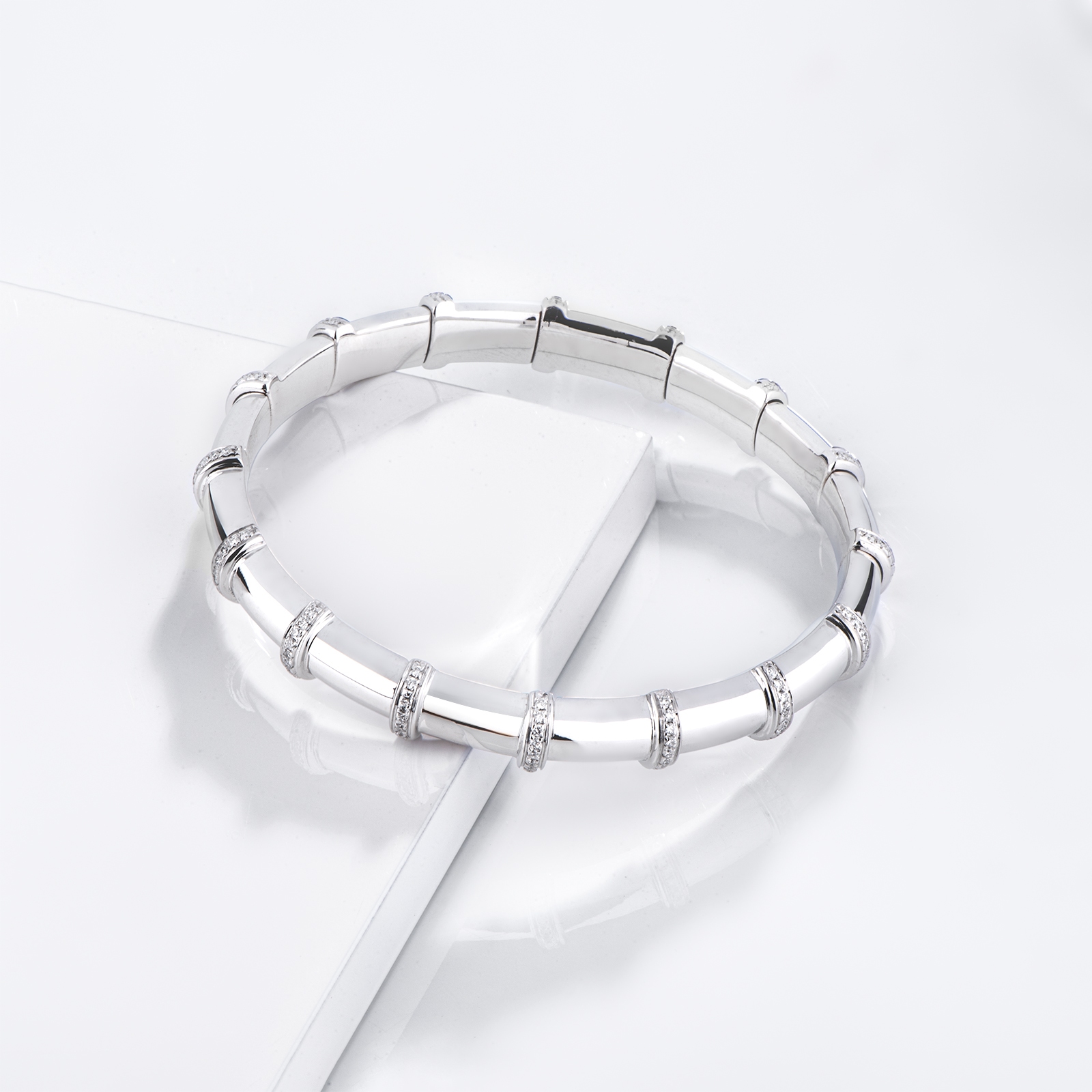 Pulsera elástica en oro blanco 18k con hileras de diamantes