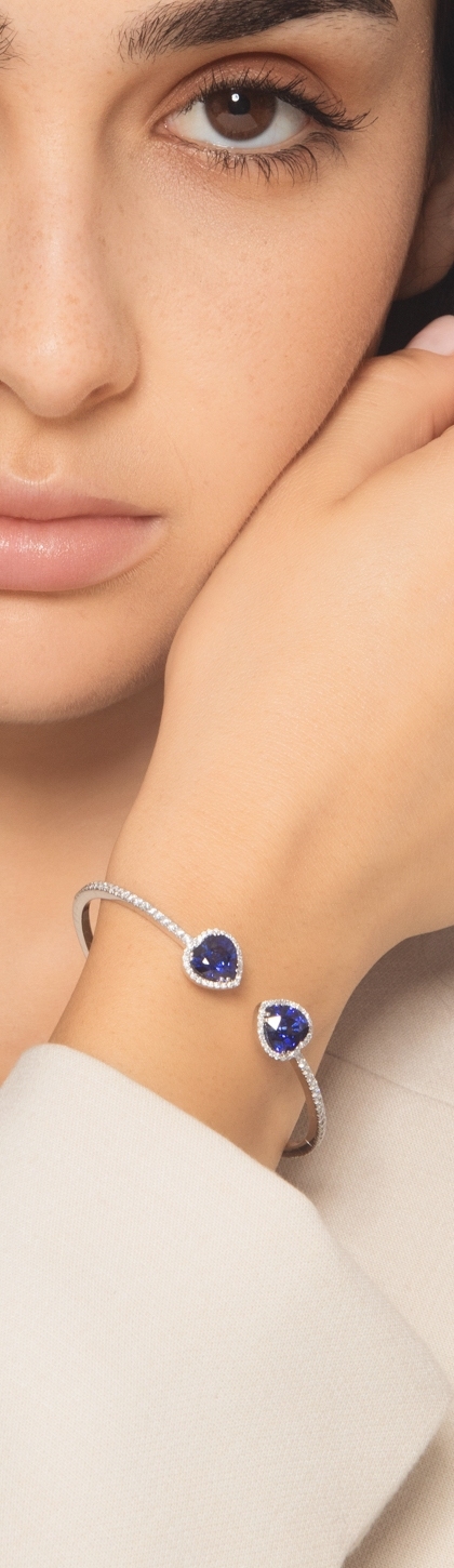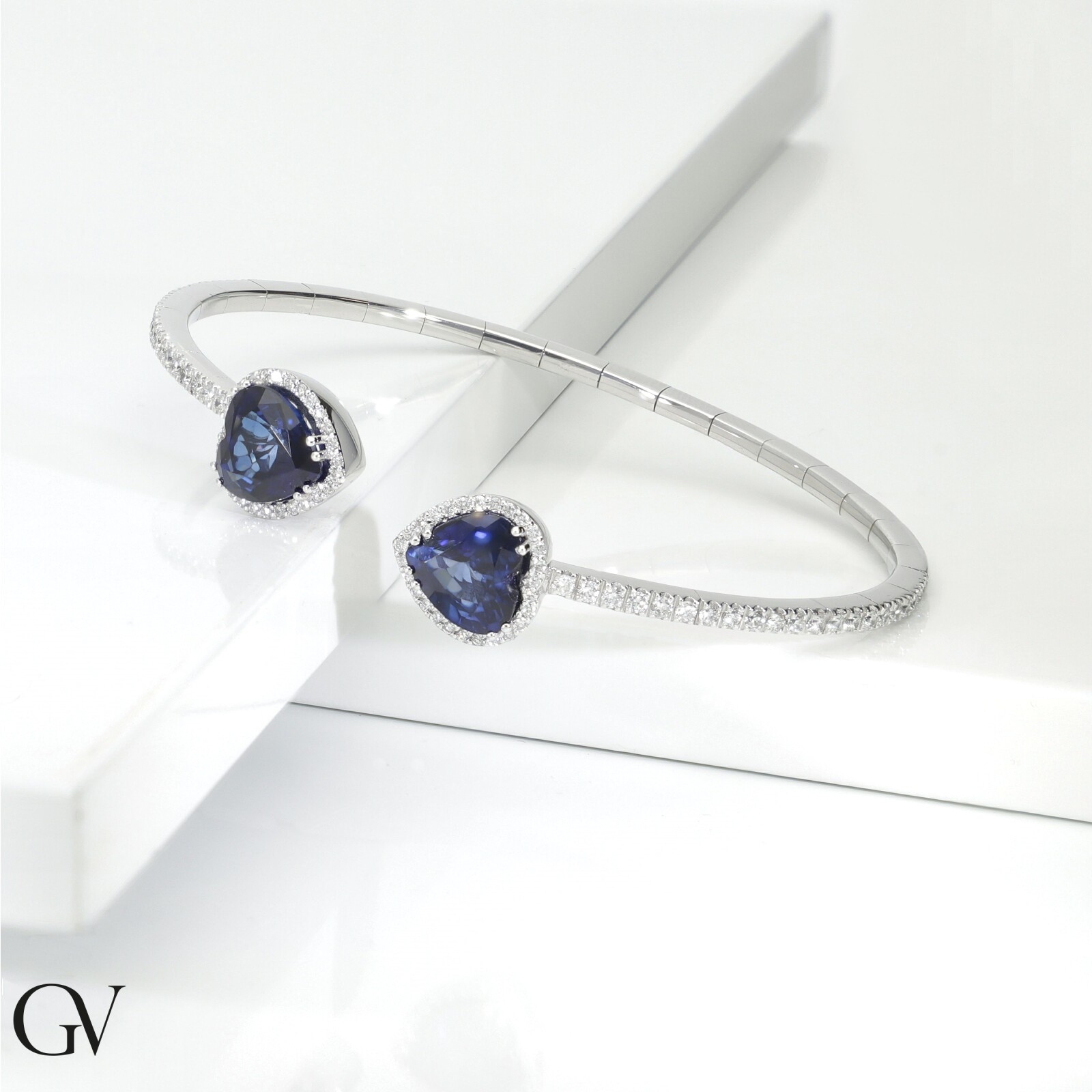 Pulsera oro blanco 18k zafiros corazón y diamantes