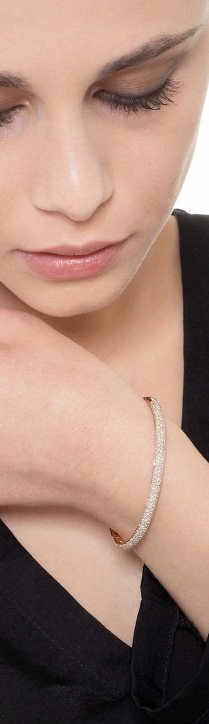 Pulsera rígida de oro rosa de 18 quilates con pavé de diamantes