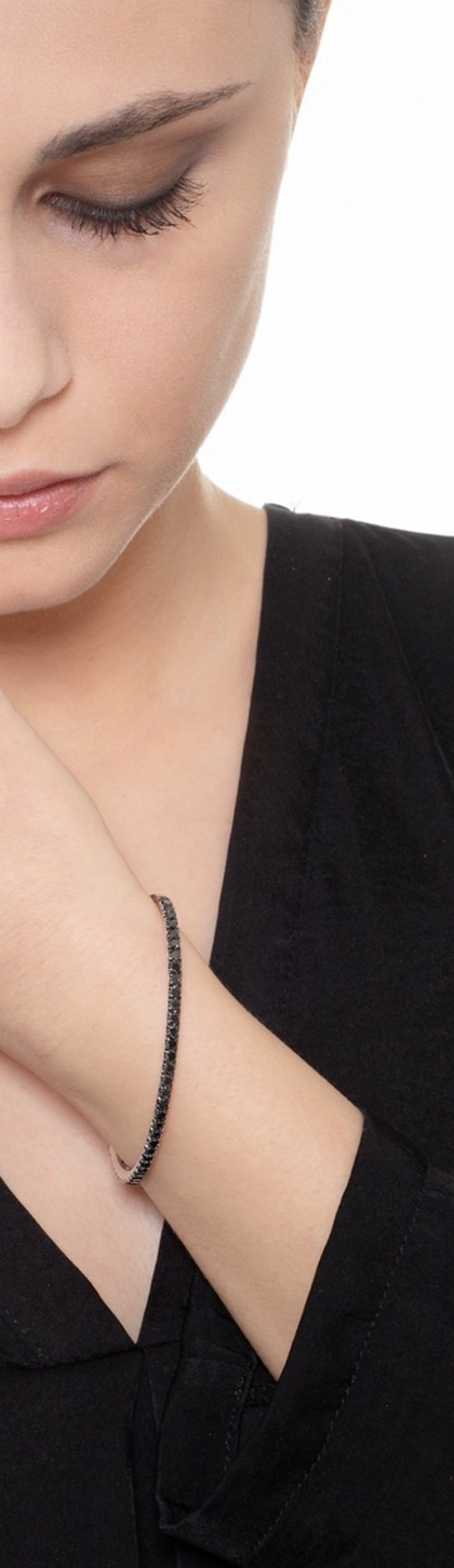 Pulsera rígida oro blanco de 18 quilates con diamantes negros