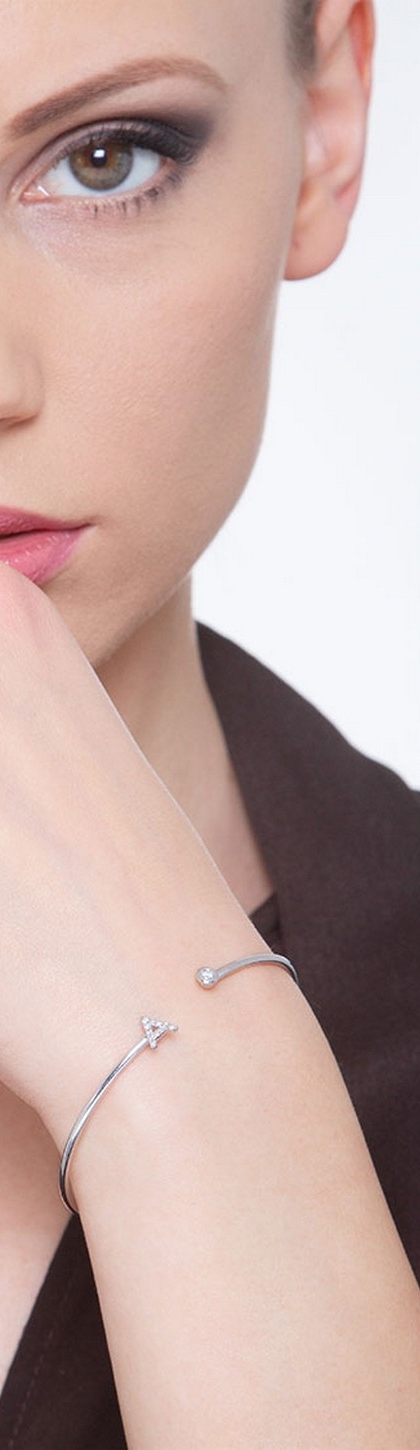 Pulsera rigida de oro con letra A en diamantes