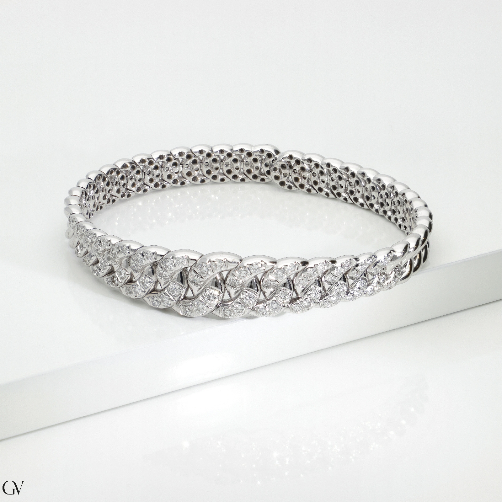 Pulsera semi-rígida groumette en oro blanco 18k con diamantes