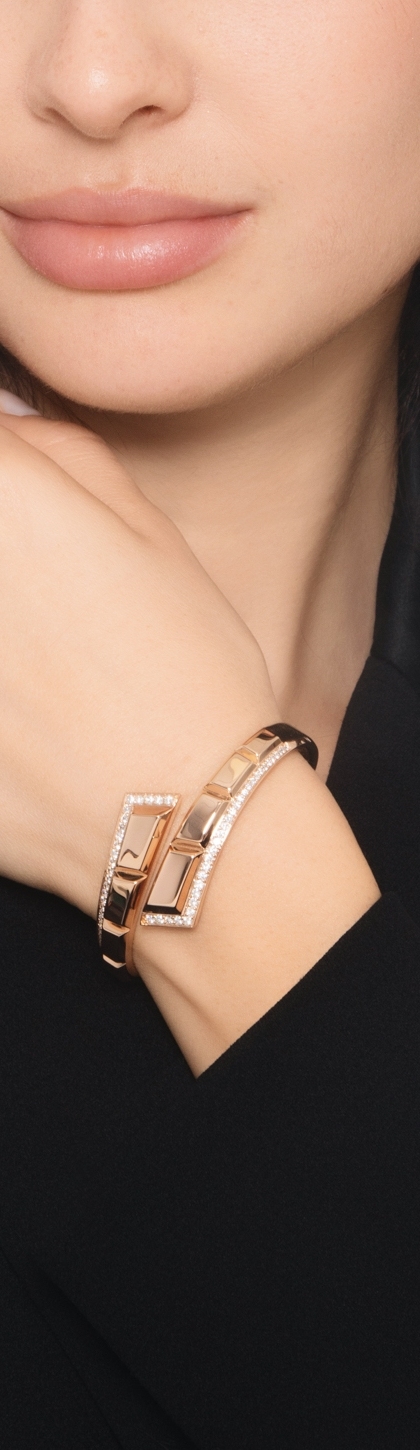 Pulsera semirrígida elástica en oro rosa 18k con diamantes