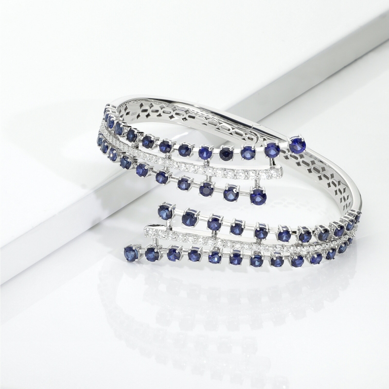 Pulsera semirrígida en oro blanco 18k con zafiros azules y diamantes