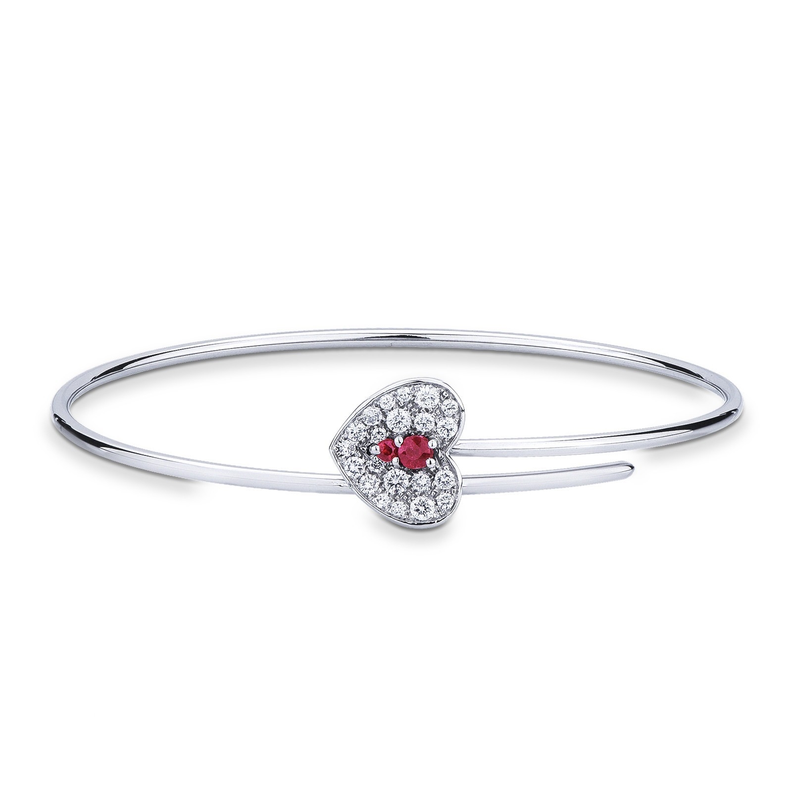 Pulsera semirrígida oro blanco 18k con corazón de diamantes y rubíes