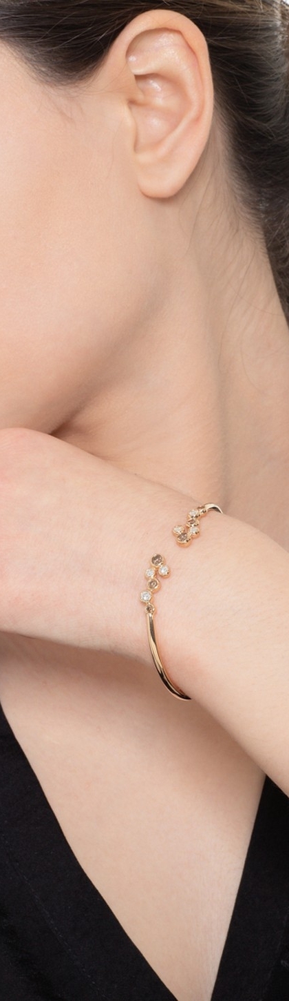 Pulsera semirrígida oro rosa 18k con diamantes marrón y diamantes