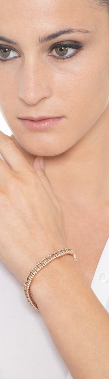 Pulsera en oro rosa 18k con diamantes brown y doble fila de diamantes
