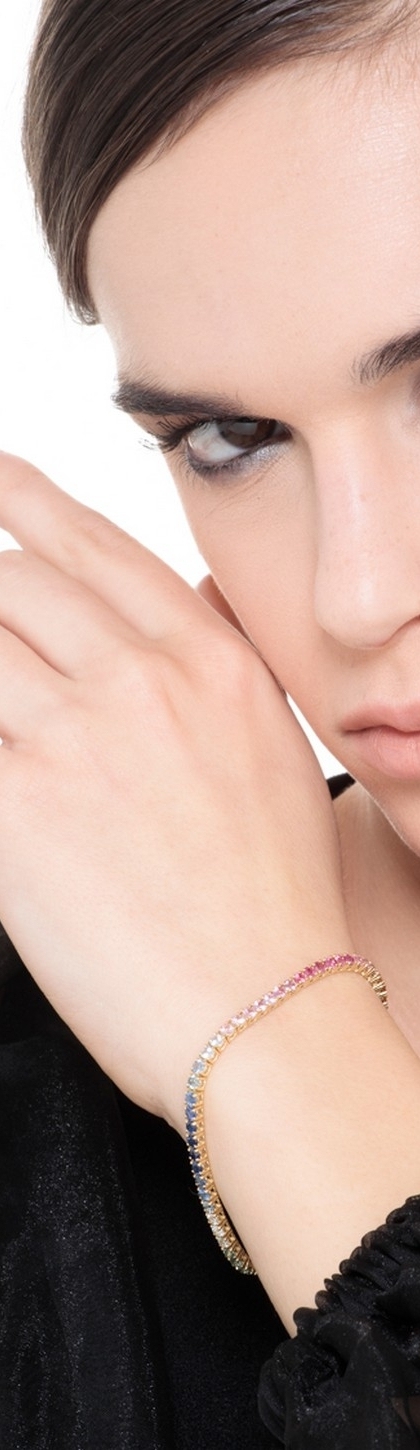 Pulsera riviera en oro amarillo 18 quilates con zafiros multicolores