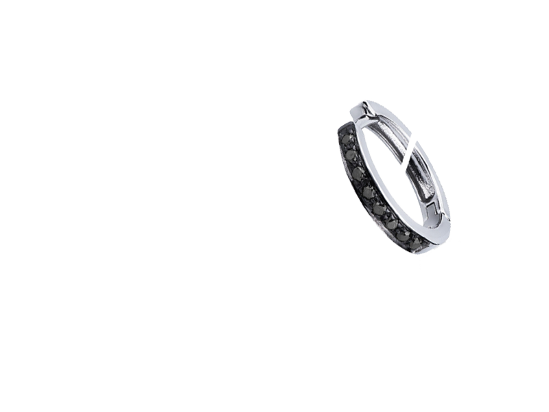 Pendiente mono con aro en oro blanco de 18k con diamantes negros y puntas brunidas